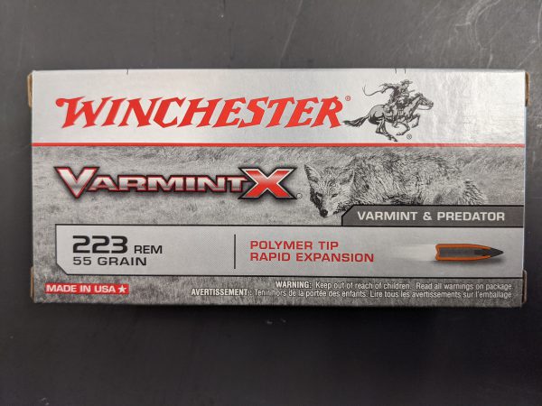 Winchester Varmint X 223 Rem 55GR PTRX Winchester Varmint X 223 Rem 55GR PTRX Item Description Winchester Varmint X 223 Remington 55 grain Polymer Tip Rapid Expansion Winchester Super X 450 Bushmaster 260GR PP American Eagle 9MM Makarov 95GR FMJ << return to inventory